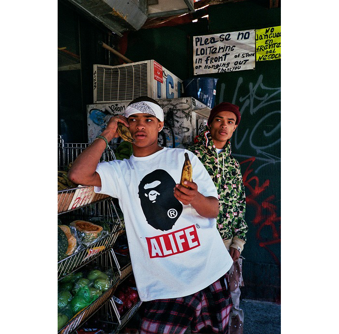 Japan’s coolest guy brand A Bathing Ape have released their latest collabo team up with New York brand ALIFE on a new collection for Spring/Summer 2015. Taking both brands highly recognized signature graphics, the collection features a series of tees, come caps and a camo shark hoodie. Take a look through the joint effort below and shop it on the collections launch day of May 16 at BAPE locations worldwide and online.