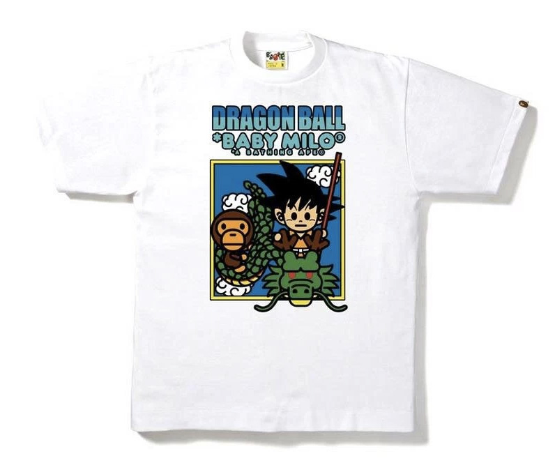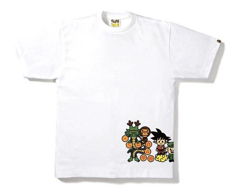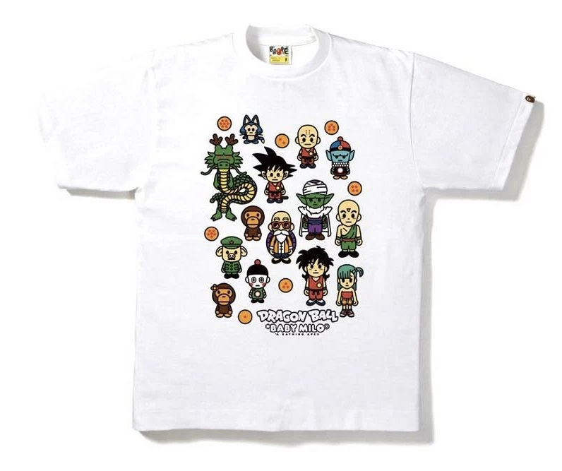 To celebrate the 30th Anniversary of everyone’s favourite anime series Dragon Ball, highly coveted Japanese streetwear label A BATHING APE has collaborated with the franchise for a capsule collection. The limited edition collection features a series of black and white graphic tees, crewneck sweatshirts, hoodies, a cushion, tote bags, and a mug. Each piece has characters from the show along with the BAPE logo or Baby Milo character. The collection arrives tomorrow, April 23rd, at A Bathing Ape locations.