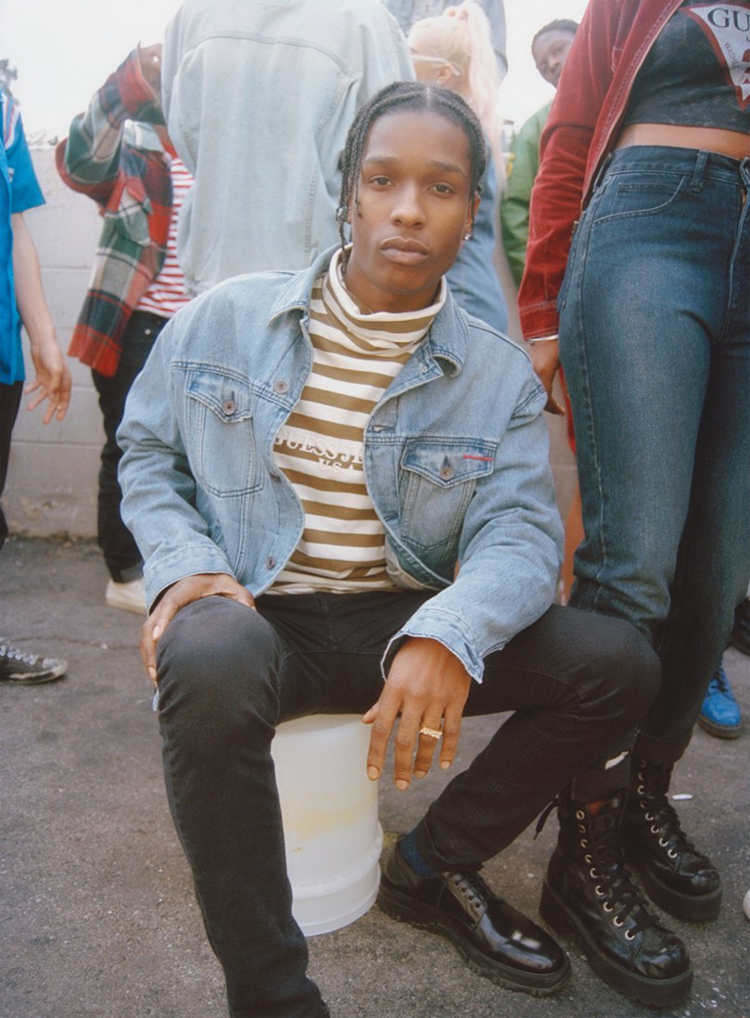In an attempt to recapture their cool-guy heyday, American fashion brand GUESS has tapped New York’s fashion god A$AP Rocky for a unique capsule collection. The new A$AP Rocky x GUESS Capsule Collection consists of pieces for both men and women and includes overalls, denim jackets, long-sleeved striped tees, distressed denim jeans and booty shorts and much more. The collection pulls inspiration for the 90’s when the brand was king in the streets, but smartly replaces the S’s in GUESS with Rocky’s well-known dollar sign. The collection is set to drop next month with presale beginning January 30.