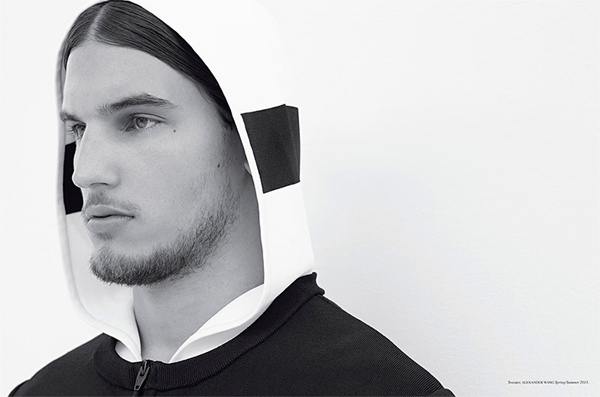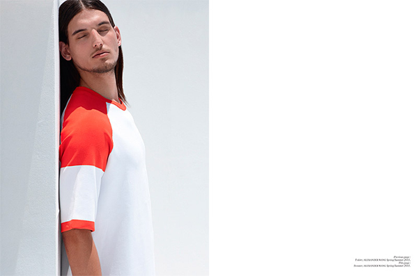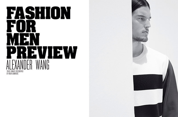 For the latest issue of French magazine Fashion For Men, model Travis Cannata posed for Milan Vukmirovic in pieces from the latest Alexander Wang collection. Take a quick look at the menswear editorial below.