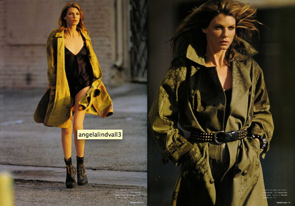 Angela Lindvall takes her underwear and outwear for a run in this Numéro Tokyo editorial called en-trenched Angela. Photographed by Hans Fleurer and styled by Heathermary Jackson, the shoot takes the underwear as outerwear trend to the streets with some stylish trench coats (for modesty’s sake), fabulous belts and thick wedges.