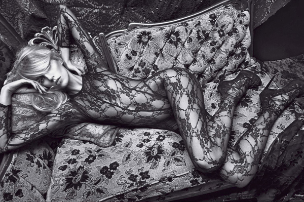 The incredibly daring and risqué French publication Lui presents Polish supermodel Anja Rubik in the nude for their sixth issue. Shot by Mario Sorrenti and styled by George Cortina, the pictures featuring the top-model posing in the nude and semi-nude in black lace lingerie and heels. Take a look through the editorial below and if you can, pick up the latest issue of Lui magazine at select stockists. If you can read French, here’s the full article.
