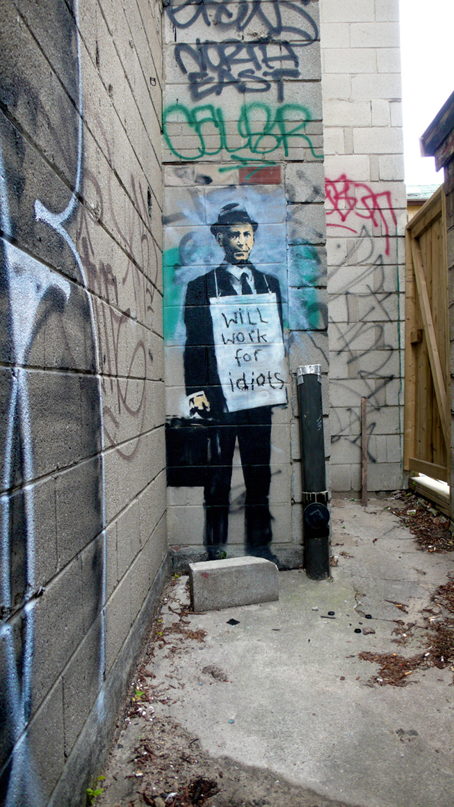As of yesterday images started to emerge that legendary guerrilla graffiti artist Banksy was in Toronto doing his thing. According to Show & Tell Gallery a three signature Banksy images have been sighted, which is inline with the recent sighting of other Banksy works that have popped up in the US over the last couple of weeks. This makes sense as his new movie, Exit Through the Gift Shop premiered in several American cities including Canada a couple weeks ago. As a Canadian and avid graffiti enthusiast I am super pleased that Toronto has been selected for vandalism.