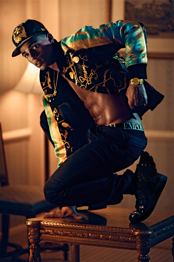 25-year-old, French break-dancing phenomenon who snagged old Madonna’s heart, Brahim Zaibat, recently spend some time with photographer Sebastian Faena for VMAN Magazine. Dressed by Carlyne Cerf de Dudzeele in pieces from Jeremy Scott, Versace, Diesel, Emporio Armani and more, will be featured in issue #29 of the magazine. Not surprisingly Brahim recently signed a modeling deal with the prestigious IMG modeling agency and also hit the runaway for Jeremy Scott at NYFW. Take a look at the full series of pictures below.