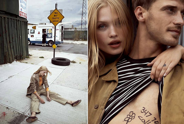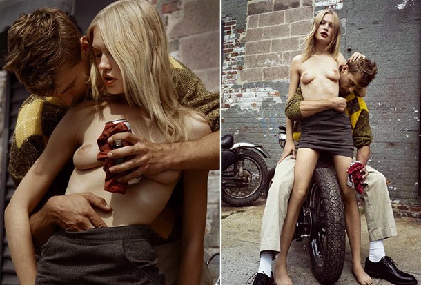 French top model Clément Chabernaud teams up with super babe Camilla and fashion photographer Cedric Buchet for a very sexy spread in the October 2014 edition of Lui magazine. The piece was styled by Michael Pilhouze, and features both models looking sexy and lounging around back alleys and on motorcycles. Take a look below.