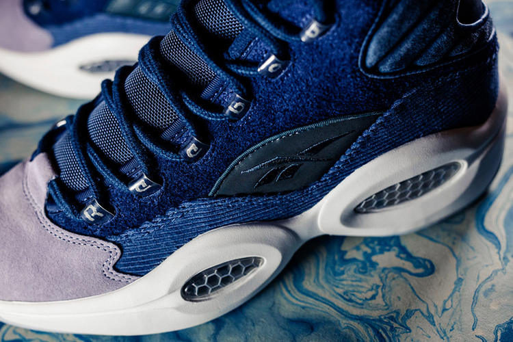 NBA All Star takes over Toronto this weekend and as such every single footwear brand and activewear/ apparel brand is going hard at making sure we all know they are out there hustling. This time around Toronto-based streetwear and sneaker boutique Capsule has teamed up with Reebok for a special re-release of the iconic Question Mid. The shoe celebrates its 20th anniversary with a Canada-inspired “Windchill” rendition which will be dropping exclusively at Capsule on February 12th. The colourway was inspired by cool Canadian breezes, and as such features touches of blue with purple accents throughout the upper and suede, leather and corduroy materials on the mid-tops, a grey toe and Capsule branding on the heel, and Reebok branding on the side and tongue.