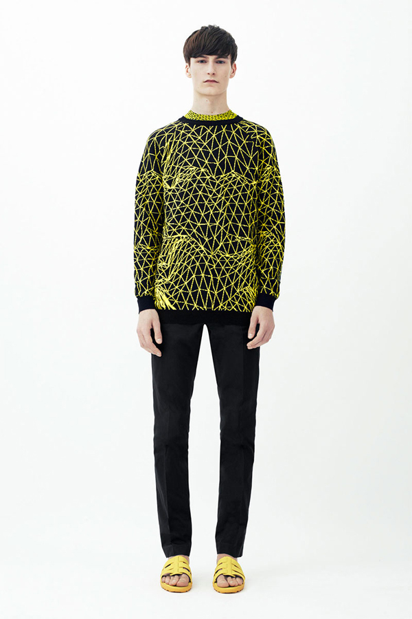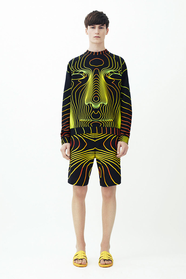The always flamboyant and bold Scottish designer Christopher Kane, presents his latest menswear collection for the Spring/Summer 2014 season. Turning to technology for his inspiration, the collection features various colourful 3-D renderings including that of the human body printed onto various pieces of clothing like shirts, sweatshirts, pants, shorts and scarves to great effect. Take a look at the bold collection below.