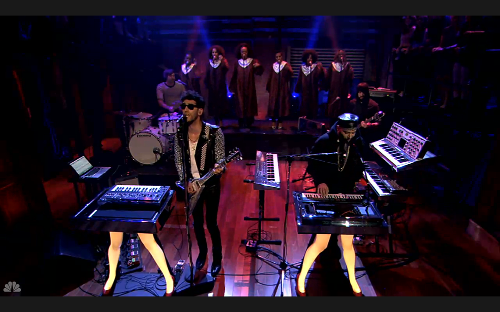 Electro-funk duo Chromeo took to the stage of “Late Night With Jimmy Fallon” the other night to perform “Sexy Socialite” off their upcoming White Women album. Accompanying the duo were special guest, hard-rock dup Death From Above 1979 who provided backup vocals and instrumentation.