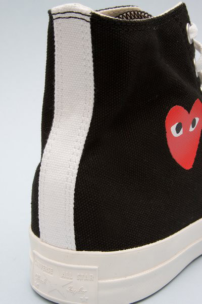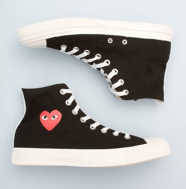 Say WHAT!!! Checkout the latest collaboration between Japanese fashion designer Comme Des Garçon’s and Converse for the Comme Des Garçons Play x Converse Chuck Taylor. The Comme Des Garçons Play heart logo has been garnering a lot of hype and notoriety over the last year on shirts, cardigan and sweaters, especially when being worn by a certainly Mr. Kanye West. This particular collaboration meshes brown canvas and with the signature heart logo on the outside, and an embroidered Converse All-Star logo in the inside. These particular Chuck’s will set you back about $100 USD, which is awfully expensive for a pair of canvas Converse shoes, but compared to the price point of this Japanese fashion company’s t-shirts it is nothing. Oh and while we are on the topic Comme Des Garçons is French for “like boys,” interesting.