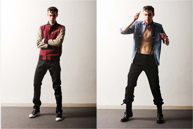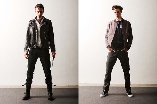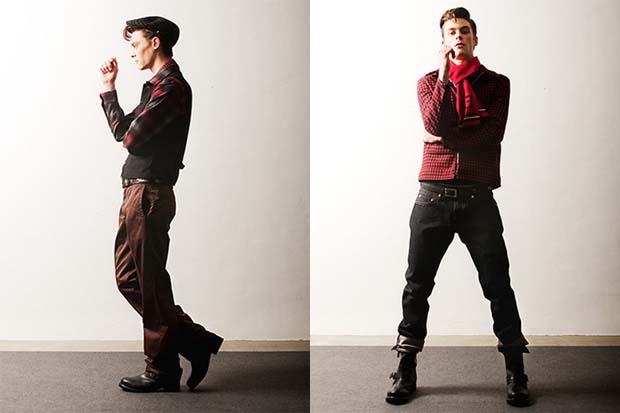 Check out this slick, nuevo-50’s greaser look from the creative genius’s behind Japanese label Deluxe. The Fall/Winter 2010 Collection pays homage to the past with rockabilly and greaser culture as the main inspiration, with a contemporary take on biker wear with knits, denim tops, leather jackets and wide trousers. I am totally in love with all these pieces and outfits, especially the rider jackets, and slim trousers. This is a brand certainly worth watching, they will be HUGE one day!