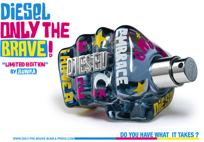 This is very cool! Men’s premium fashion brand Diesel has hooked up with artist Bunka of Artoyz to create a very special edition bottle for its ‘ Only The Brave’ fragrance. This collaboration has resulted in a super cool, limited edition bottle, called the ‘Only The Brave Limited Artoyz Edition’. The bottle retains the original fist shape of the original Diesel fragrance but is decked out in to Bunka’s aesthetics featuring stars, x’s, and very other shapes. What is more awesome, and probably where the actual collectability of this collabo lies is in the overall packaging which of course includes the box.