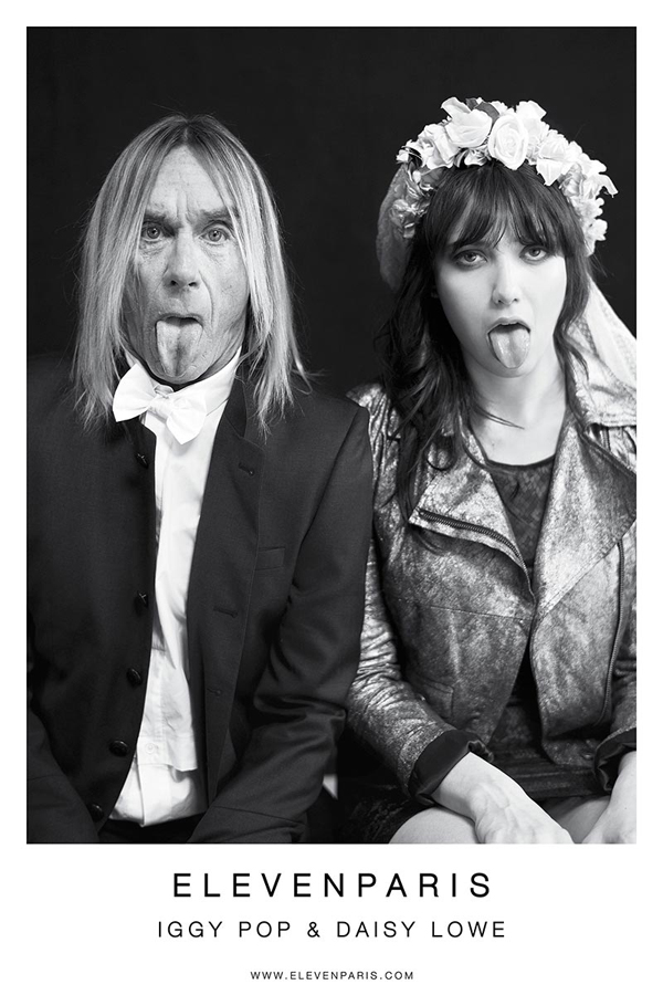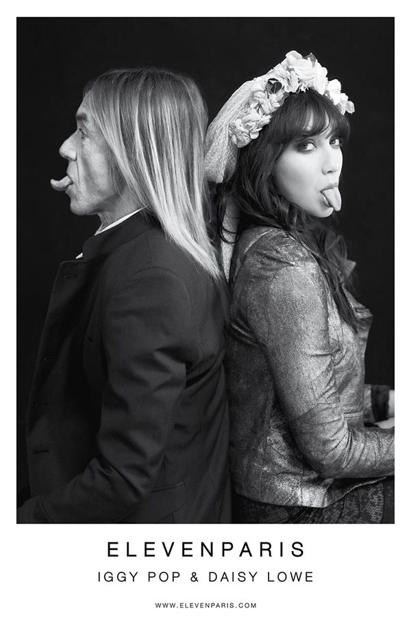 For the Fall/Winter 2012-13 season ELEVENPARIS tapped the absolutely gorgeous Daisy Lowe and “godfather of punk” Iggy Pop to be the face, or perhaps more appropriately the tongues of their campaign. Shot in black and white by photographer Mathieu César the two muses were outfitted in a tuxedo and bow-tie and a black lace dress with a metallic blazer, gender respectively. It’s always nice to see Iggy all cleaned up with a shirt on, he almost looks respectable. Oh and did we mention how beautiful Lowe is? Wow!