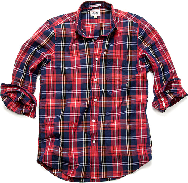 This flannel looking-plaid shirt, that’s not flannel is the perfect summer shirt, for those hot and sweaty nights out on the town. The Hugger Madras Shirt by GANT Rugger for ACL & Co. is a lovely slim-fit, summer-weight, 100% cotton handloom madras shirt, inspired and reproduced from vintage 70’s design. Hurry up and grab your as only 73 shirts were produced to celebrate the birthday/birth date of GANT Rugger.