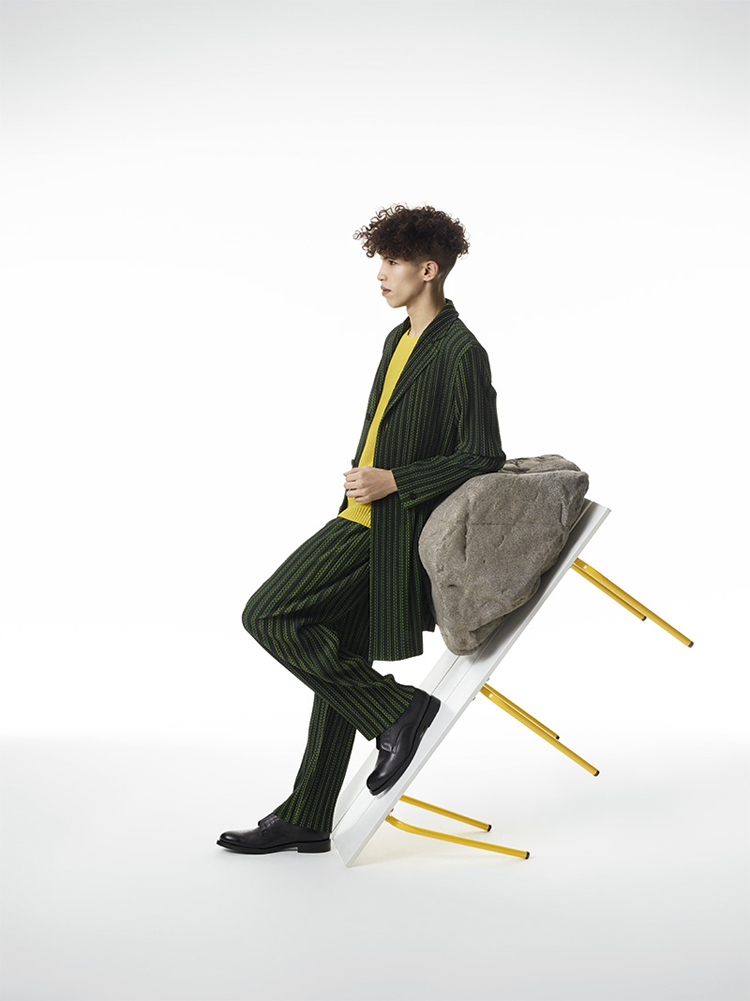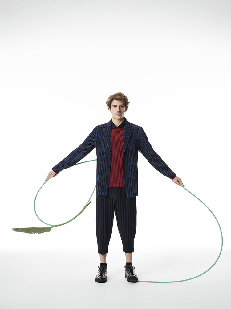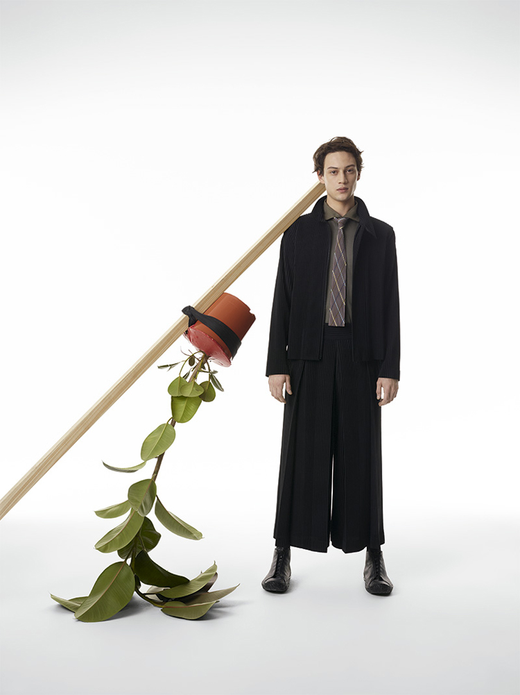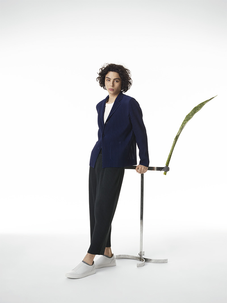 Famed Japanese fashion designer Issey Miyake presents the latest collection for his HOMME PLISSÉ line. The lookbook was shot by PpGrégoire Alexandre who presents the youthful and colourful line in a very clean way. Adding in avant-garde furniture and potted plants, the juxtaposition works perfectly to enhance the look design elements of the clothes. The collection itself features light jackets, pinstripe suits, vests and trousers, all with the famous Miyake signature pleats.