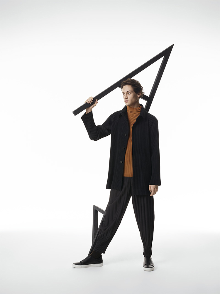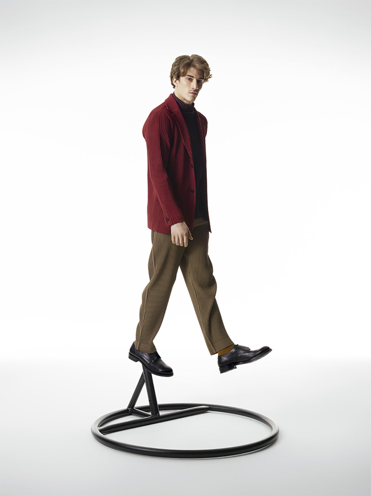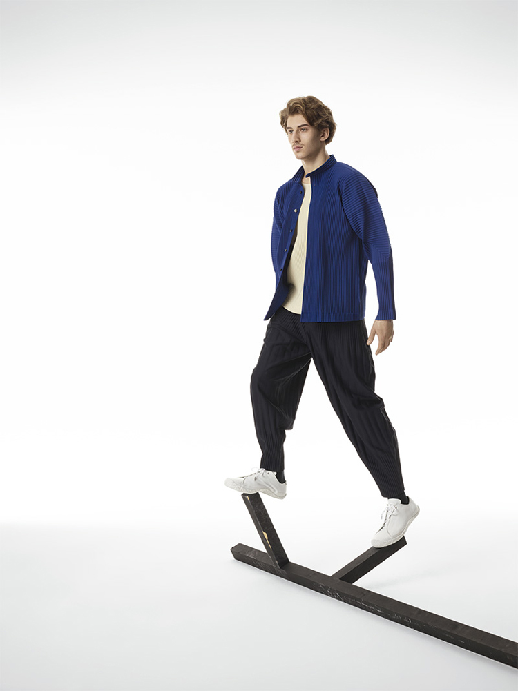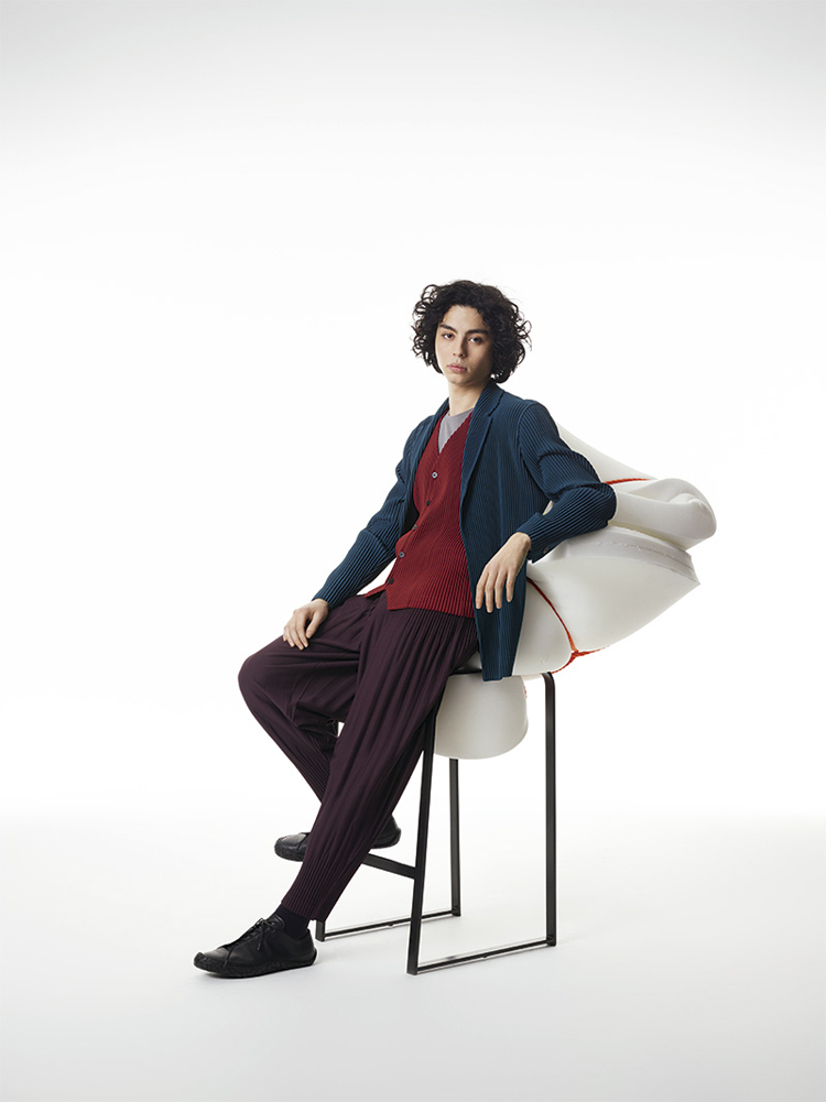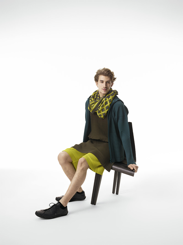 Famed Japanese fashion designer Issey Miyake presents the latest collection for his HOMME PLISSÉ line. The lookbook was shot by PpGrégoire Alexandre who presents the youthful and colourful line in a very clean way. Adding in avant-garde furniture and potted plants, the juxtaposition works perfectly to enhance the look design elements of the clothes. The collection itself features light jackets, pinstripe suits, vests and trousers, all with the famous Miyake signature pleats.