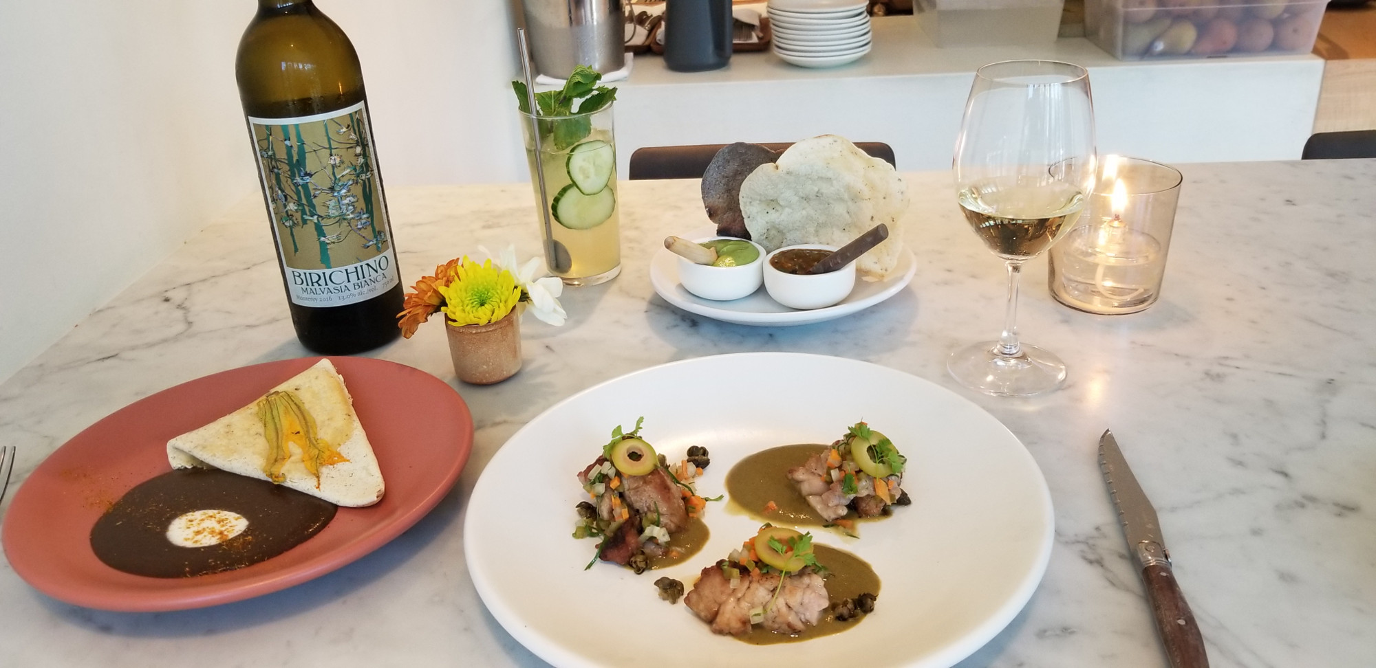 Order this: Mollejas – estofado almendrado, olive, caper, jalapeño, sesame seed