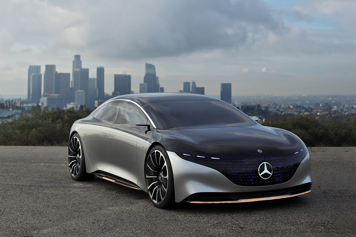 Sitting atop Elysian Park overlooking Dodgers Stadium and DTLA in the early morning hours, Mercedes-Benz rolled out their latest vision of the future, the Vision EQS. An all-electric vehicle, looking fresh out of Tron, silently into position shinning in the mid-January sun of wintertime Los Angeles.
