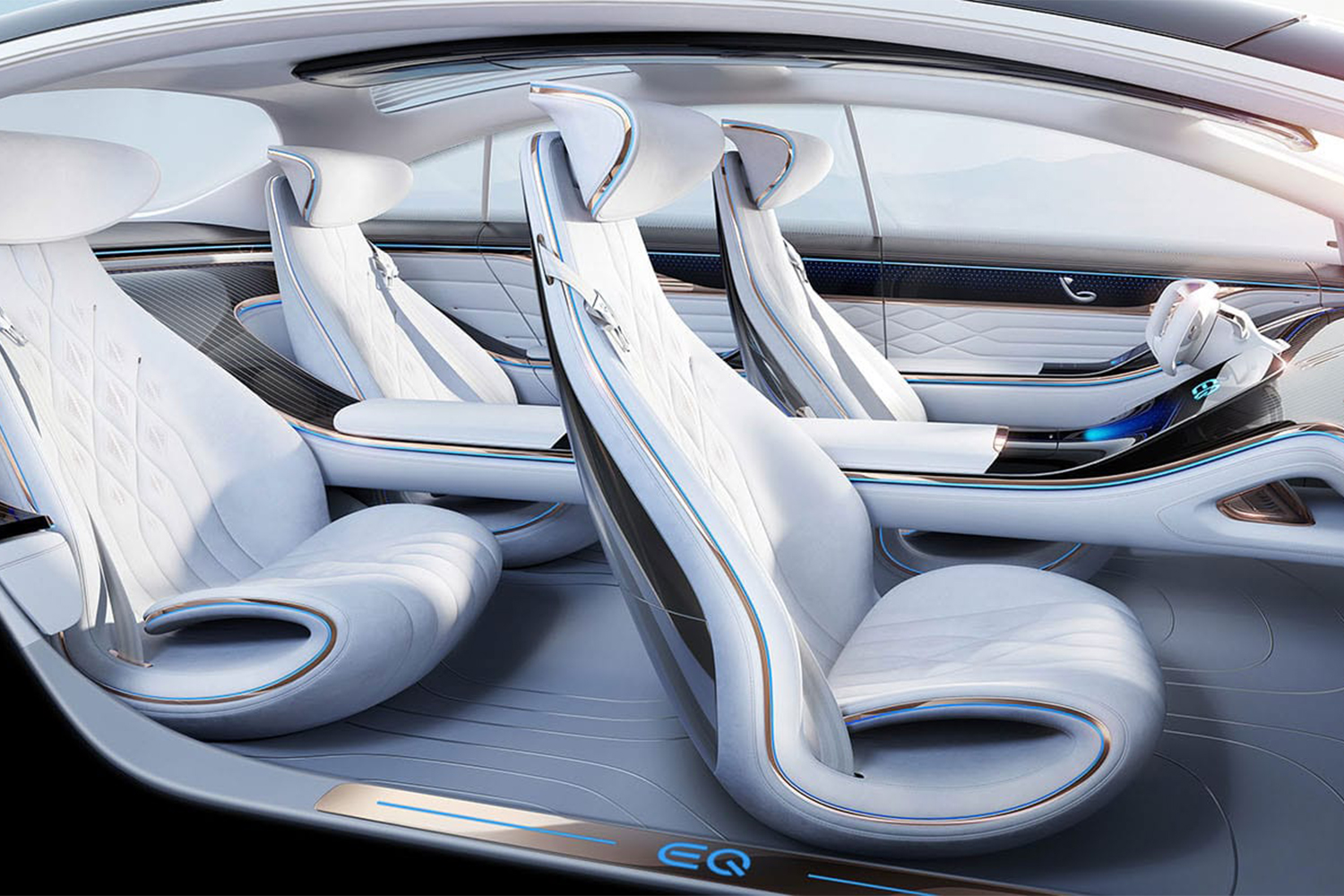 We won’t spend too much time on the interior as it is a vision car, and a lot of the technology that will be inside the car is still theoretical and wasn’t yet installed in the prototype. However, the cockpit of the VISION EQS is intended to feel like the deck of a boat and does indeed feel very luxe.