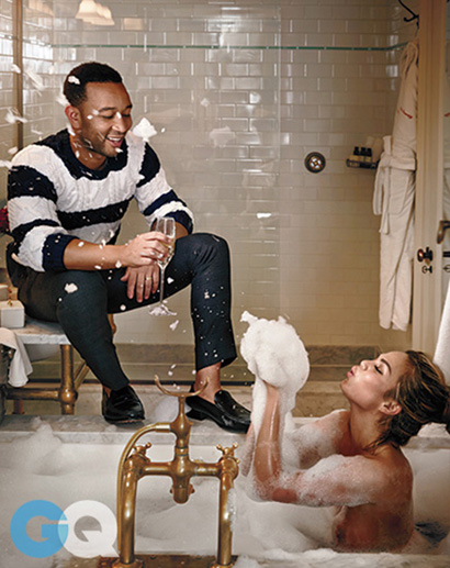 Super cool power couple John Legend and Chrissy Teigen get sexy for the February issue of GQ. The somewhat newly wed couple, they were married in September 2013, invite the cameras behind closed doors for the intimate shoot in New York City. Considering John Legend has a voice that could melt a supermodels expensive lingerie right off their super skinny body, and Chrissy Teigen is a supermodel, the two make for the ultimate couple. Oh, and they have a super cute French bulldog. Dang. Check it all out below and read the interview over at GQ.com.