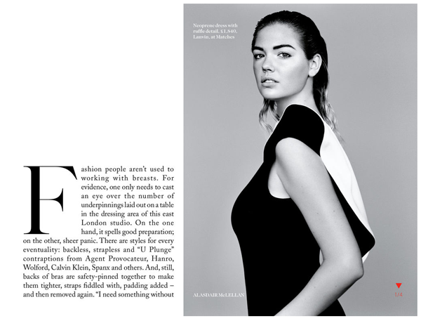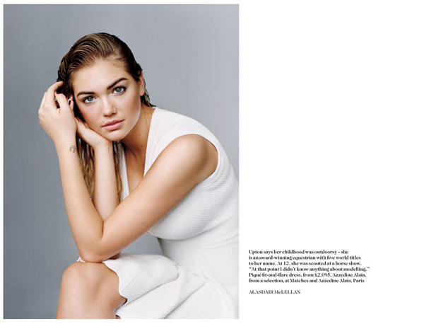 2012 was without a doubt the year of Kate Upton. She took the world by storm and found her way into everyone’s consciousness with her plethora of appearances in every type of publication. Well the swimsuit bombshell shows no sign of slowing down in 2013 as she graces the cover of Vogue UK for their January issue. The editorial, appropriately named “the WOW Factor” shows Upton in a rare, mature, fully clothed light and delves into her past as a champion equestrian and how the modeling industry has no idea how to work with breasts. It’s a great read. Take a look at the Alasdair McLellan photographs below, and grab a copy of Vogue UK now to read the piece.