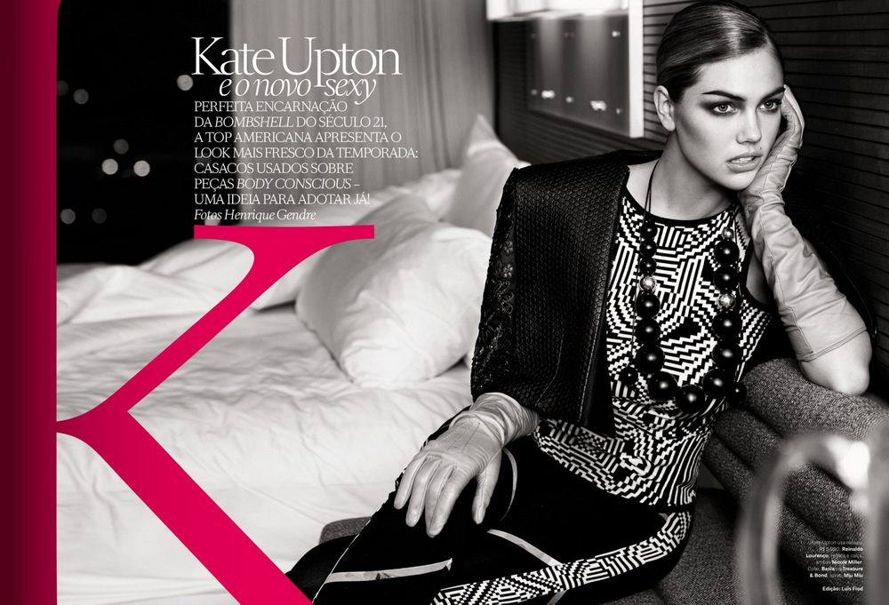 American top model Kate Upton shows off her photogenic versatility in the July 2013 issue of Vogue Brazil. The cover and editorial were shot by New York-based fashion photographer Henrique Gendre in New York, with Upton wearing some of the worlds most luxurious brands in the most sensual and seductive ways. Take a look below.