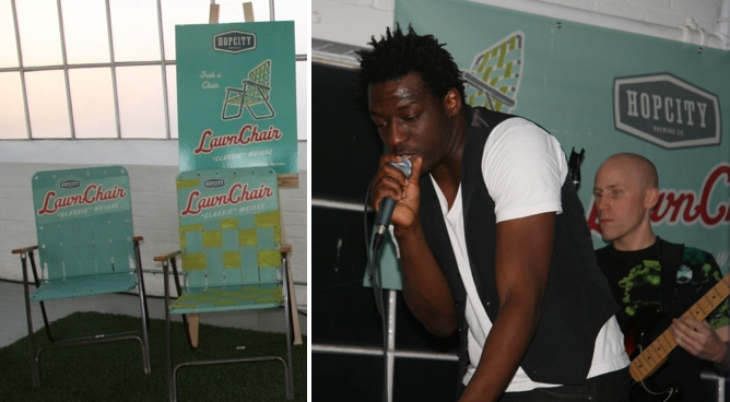 After debuting on the scene last Fall with their delicious Barking Squirrel lager, Hop City Brewing launched yet another tasty beer on Wednesday night in the always stunning Andrew Richard Designs Loft. Starting out with some yummy comfort food courtesy of east end Gastro Pub Prohibition, slowly but surely, keg after keg of their latest Lawn Chair “Classic” Weisse, the Hop City folk partied it up pint in hand!