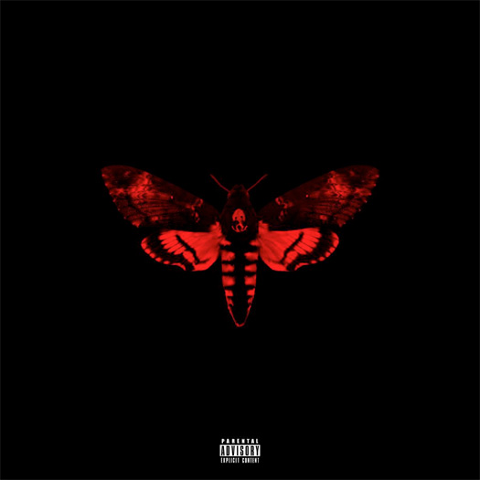 Today, the album cover for Lil Wayne’s eagerly anticipated I Am Not A Human Being 2 made its appearance online. The cover an all black affair except for a open-winged red Death’s-head Hawkmoth in the center, immediately recognizable for its association in the 1991 The Silence of the Lambs film. The album features no album information, save for the Parental Advisory. The minimalistic album was designed under the creative direction of Kanye West’s DONDA design agency, named after his late mother.