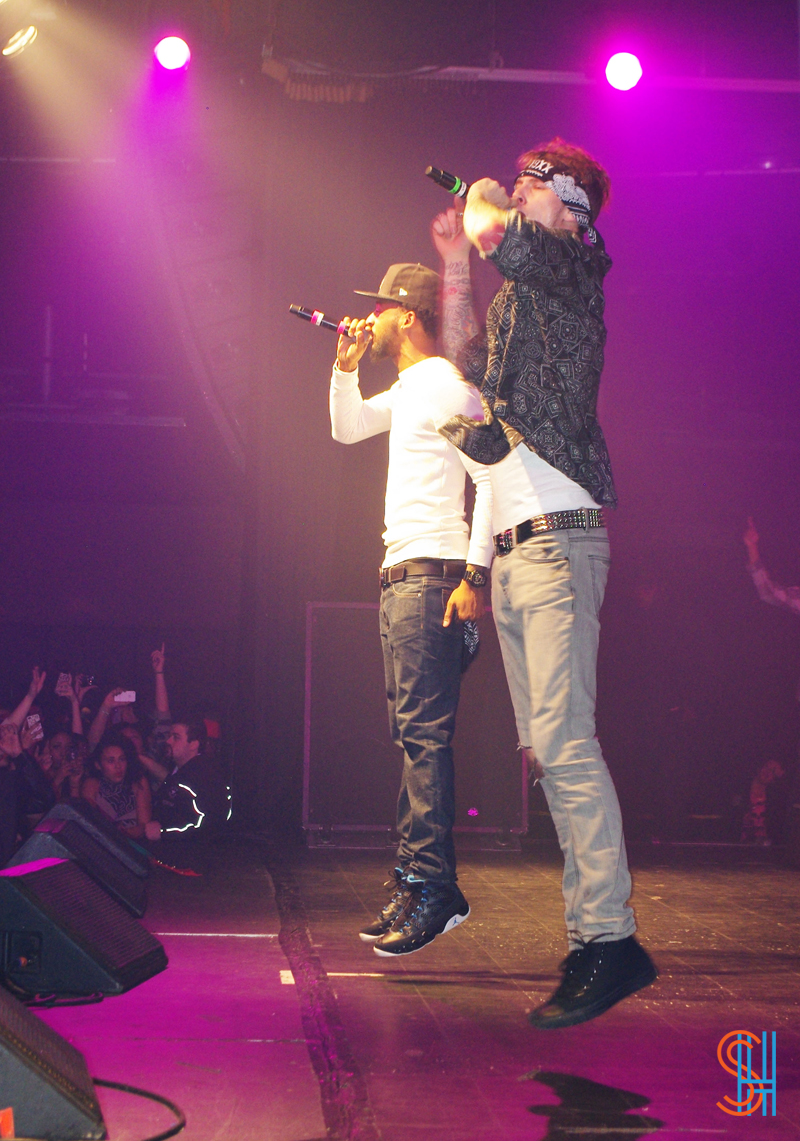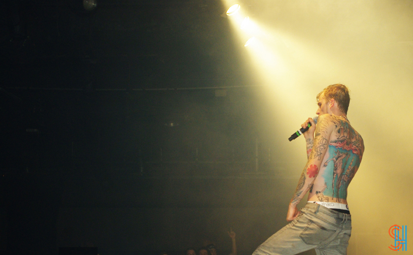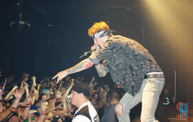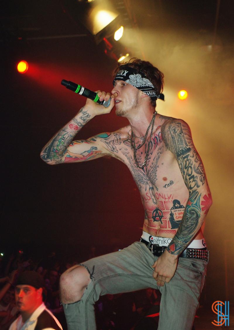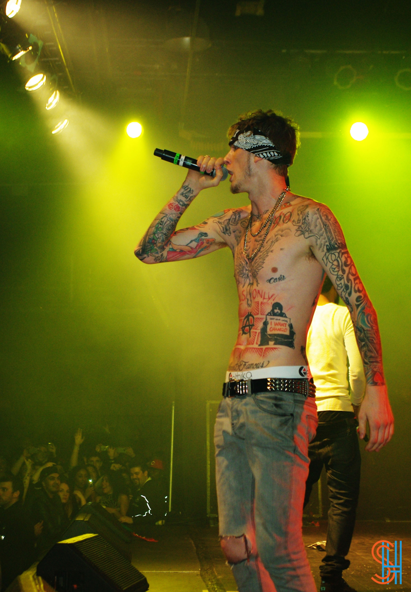 This past Friday night, December 14th, Cleveland Ohio rapper, Machine Gun Kelly took over the Kool Haus in Toronto for his Laced Up Tour. The high-energy show saw MGK diving off stage into the crowd, seriously dry hump a girl onstage, and spitting mouthfuls of booze into the mouths of the assembled screaming crowd. At one point Kelly he asked all the girls to show him their breast, starting licking a pair presented to him, at which point someone whispered in his ear and he stopped licking the aforementioned boobs and said “This is an all-ages show?!” It was a performance not to be forgotten! Take a look at the pictures of the show below, all of which were taken by our photographer LAUREL.