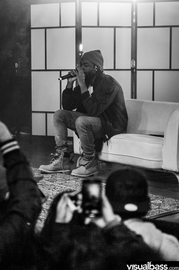 Last night, Wednesday November 12th, OVO Sound singer and producer Party Next Door took to the stage at his sold out Toronto show. Tickets for the intimate hometown show sold out within minutes when they went on sale, so you knew that everyone in that building was a real fan. The hour long performance featured Party performing on a stage set up to look like a living room, complete with sofa and (Persian) rug, as he performed all his hits from his two self-titled albums. Join him on stage was OVO Sound affiliate and local legend P Reign to perform “Realest In The City,” and boss man Drake came out to perform “Recognize” with Party. It was definitely a night to remember and celebrate. Well done Toronto. Take a look at the pictures and Vines below.