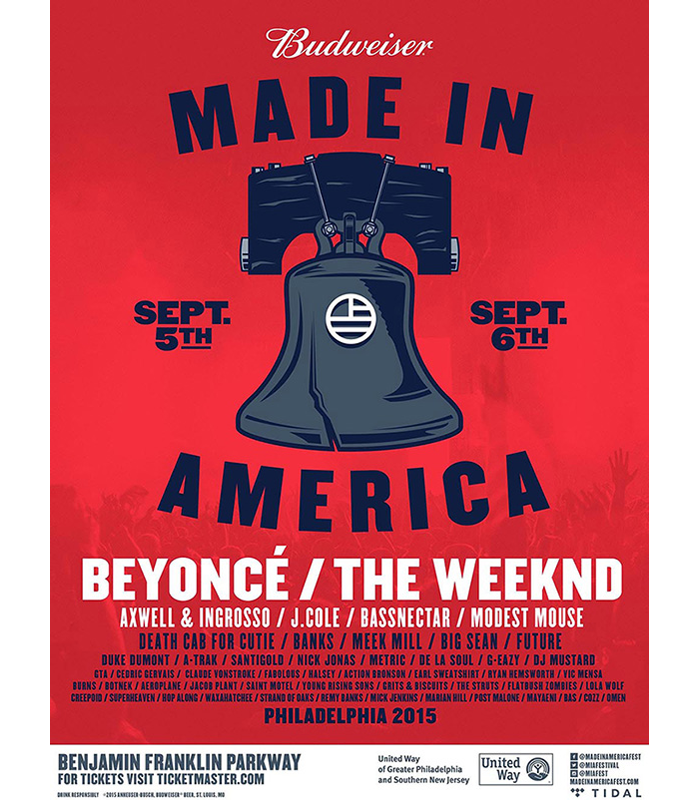 Jay Z’s Made in America Festival has announced its return to Philadelphia for the fourth year in a row. This year the two-day festival will be headlined by Beyoncé and The Weeknd. Well done the Weeknd. The two-day festival will take place over the Labour Day weekend, September 5-6, at Benjamin Franklin Parkway. The festival will also feature De La Soul, J. Cole, Meek Mill, Big Sean, Future, Santigold, Axwell and Ingrosso, Nick Jonas, G-Eazy, DJ Mustard, Fabolous, Action Bronson, Earl Sweatshirt, Vic Mensa, Post Malone, Lola Wolf, and more. Tight.
