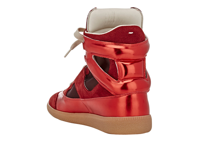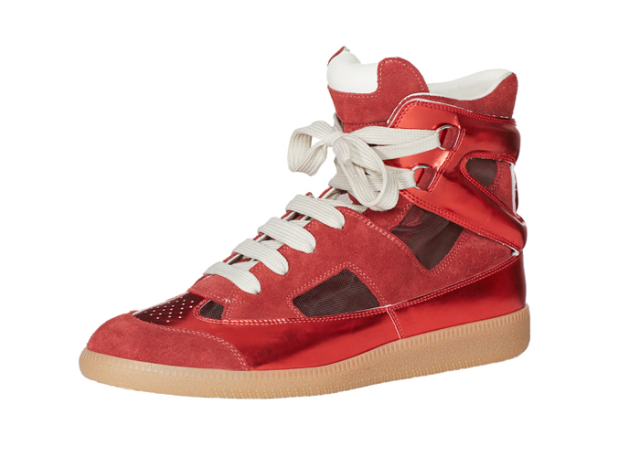 While everyone is running around your city in packs like wild dogs, touting the virtue of the running cult of Nike, fashion house Maison Margiela has partnered with Barneys New York for an exclusive new cool-guy sneaker for spring/summer 2015. While the everyone is sweating, you’ll be posted up in the new Cut Out sneaker. Featuring a lightweight and streamlined design, the sneaker is made from a mix of suede and mirrored leather, with mesh inset accents, white stitching, a padded tongue, enlarged white laces, and a gum midsole and outsole. Tight. the shoe will come in two colourways, bright red and blue, and are officially out in July, but you can pre-order now exclusively at Maison Margiela boutiques, Barneys New York locations, and Barneys online. Happy shopping.