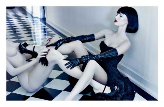 Without a doubt Megan Fox she has taken the world by storm with her stunning beauty, and her mediocre acting ability, so it is only natural that everyone wants a piece of her. For the June/ July 2010 issue of Interview Magazine, Megan was shot by Craig McDean in a incredibly provocative manner. Megan rocks a ever-so fitting bob as she undresses a mannequin that bares(!) a striking resemblance to her. Wearing pieces from Lanvin, Calvin Klein, Nina Ricci and others, Fox makes convincing model in this risqué spread. Perhaps a new career path?