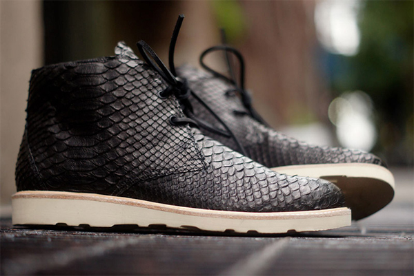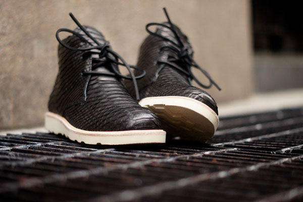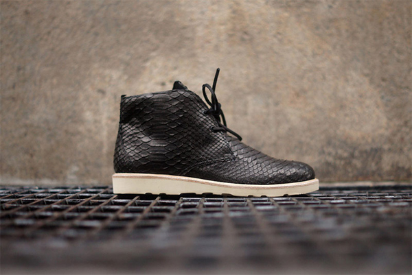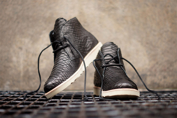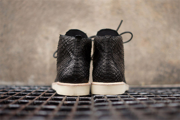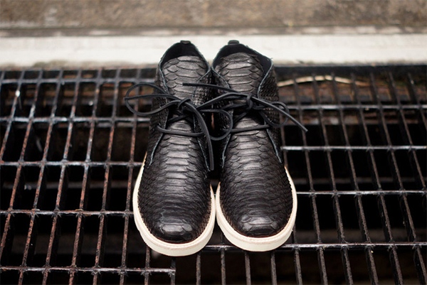 Modern Vice and Clothsurgeon have teamed up to create a beautiful python skin chukka boot for Fall/Winter 2013. The shoes feature an all python upper in a clean black on a classic chukka silhouette. Simple and to the point, these would look ridiculously slick with a nice pair of lite blue jeans and a clean white tee. Get yours here.