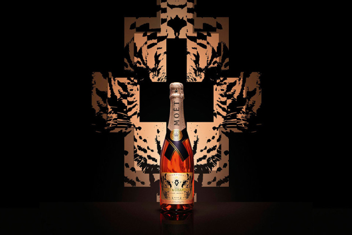 Champagne brand Moët & Chandon have teamed up with the Argentinian-born creative director of County of Milan, Marcelo Burlon, for a luxurious limited run of specially designed bottles. Burlon, who loves to work with bold and striking patterns has created three labels for the Jeraboam, Magnum and 75cl size bottles of the rosé. The limited edition collection officially launched last night in New York and is priced as such, the Impérial Rosé $59 USD for the Copper Tiger bottle, the Golden Tiger Magnum for $199, and the Platinum Tiger Jeroboam bottle retails for $2,499. Take a look at the collection below.