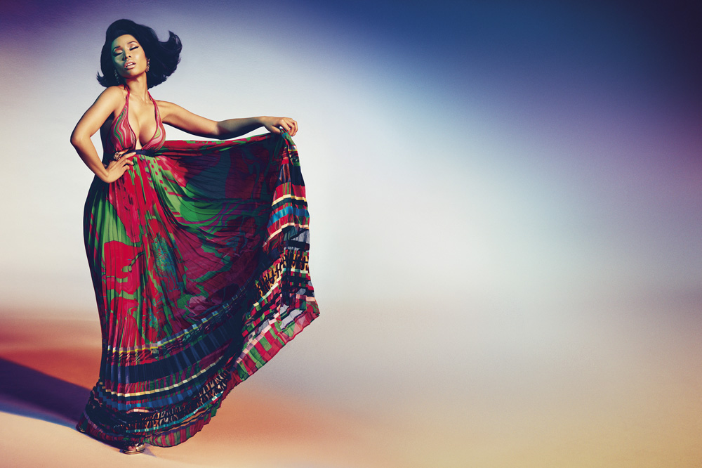 It may be official winter, but it is definitely Minaj season. After dropping her already critically acclaimed The Pinkprint album, Nicki Minaj has been tapped to be the face and body of the upcoming Roberto Cavalli Spring/Summer 2015 advertising campaign. Rocking vibrant floral and animal prints in fantastically rich hues of orange, blue, yellow, and green, Minaj owns the looks in this luxurious campaign.