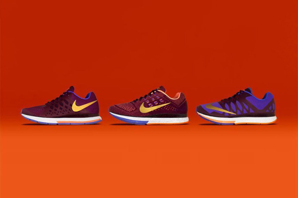 Nike Running drops a whole range of new running shoes as part of its 2014 “Celebration” pack. The pack includes a Men’s Nike Air Zoom Pegasus 31 Celebration, Men’s Nike Air Zoom Structure 18 Celebration, Women’s Nike Air Zoom Pegasus 31 Celebration, Women’s Nike Air Zoom Structure 18 Celebration and Women’s Nike Air Zoom Elite 7. The Celebration pack is available now at select retailers globally.