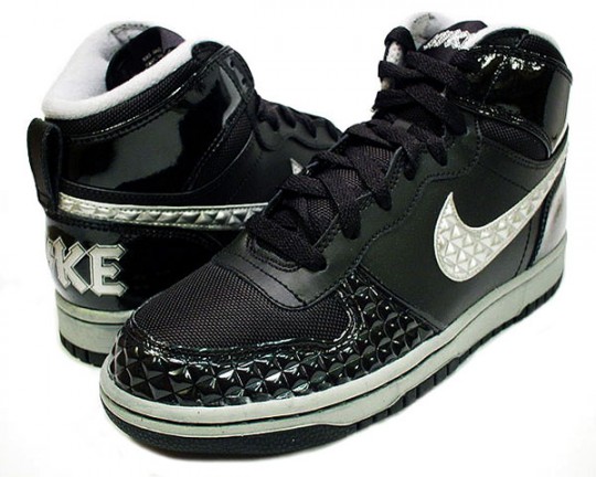 A couple weeks ago we presented to you the stunning, and studded Vandal Hi from the ‘Rock N’ Roll’ pack by Nike and today we present the Big Nike High. These ridiculously sick high top sneakers come in a black colourway with silver accents, and features patent leather covered studs round the toe box and Swoosh. These shoes will be released at fine sneaker boutiques everywhere mid-March.