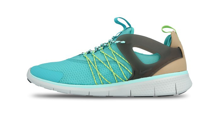 The Nike Free Virtuous has quickly become one of our favourite sneaker silhouettes of 2015. There’s a mystique and beauty in the futuristic design that just makes our heart skip a beat. This time around we happily share the new “Light Retro” version, featuring the signature neoprene mesh upper in a bright teal, with the Flywire arches in a contrasting lime green. The finishing details include a tan heel cap, gray translucent heel and ankle support, and a white Free midsole with gentle studding. Hot dang! The Light Retro iteration of the Nike Free Virtuous is available now from select Nike Sportswear stockists. Go get em!
