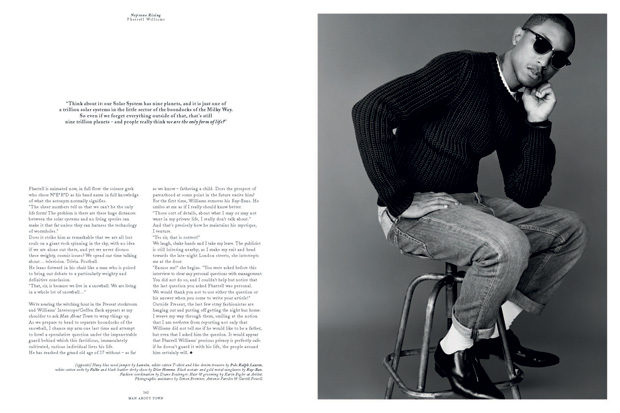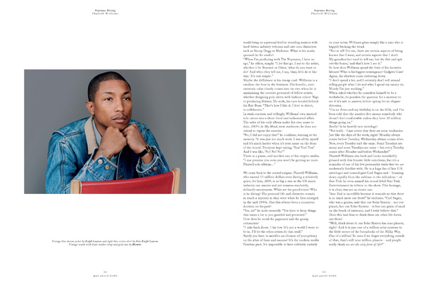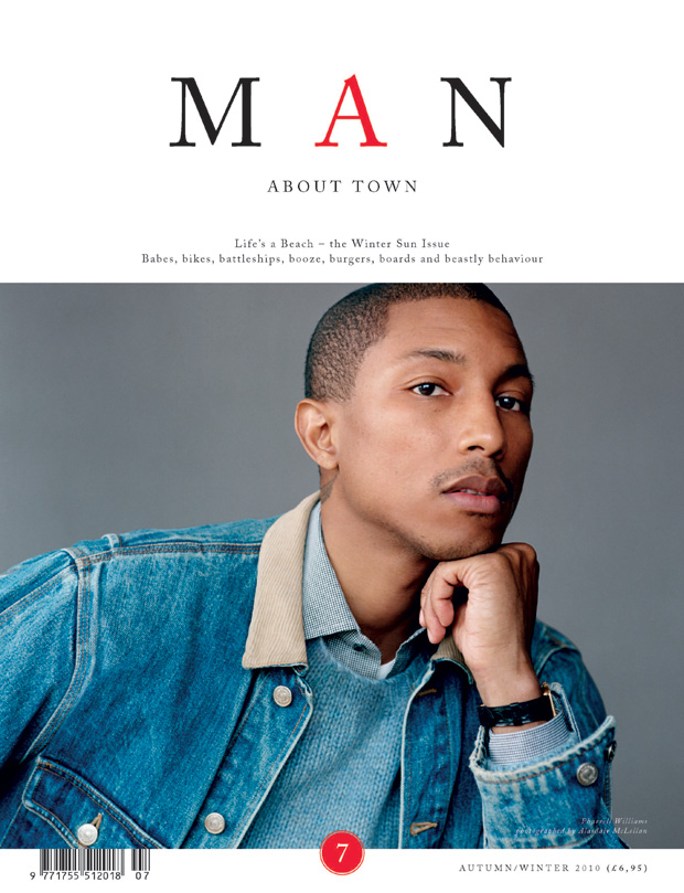 Pharrell Williams is arguably THE man. He is a Grammy Award-winning musician who makes music under the guise of The Neptunes and N*E*R*D, for both himself and a multitude of others, as well as two stellar high end urban streetwear clothing lines. So it is only natural that the multitalented Pharrell Williams would be the subject and cover-boy of choice for the latest installment from Man About Town. The interview its self is well researched with a ton of background details. The photography is done by Alasdair McLellan, and is simple and elegant with descriptions of the garments worn below each picture. This is a wonderful read and if you can find this magazine I strongly suggest you pick it up.