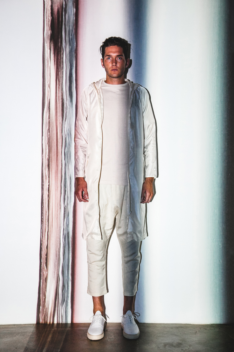 Progressive styling and lightweight materials characterize this monochromatic range of knits, wovens, bottoms and outerwear garments. Standout silhouettes include the Crete, a micro-ripstop extended rise short with technical inner compression 3/4 pants; the Nemesis, a premium stretch twill short-sleeved jacket inspired by the M-65 bomber; and the Poseidon, a deluxe nylon trench jacket.