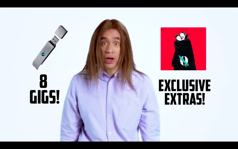 Queens of the Stone Age are releasing their brand spanking new …Like Clockwork album in a neat little limited edition 8GB USB flash drive and bottle opener. To help sell their new product, the band has enlisted the help of pitchman Ricky Chism to pedal it on TV. Chism is comically played by Fred Armisen. Is this even real? Watch below.