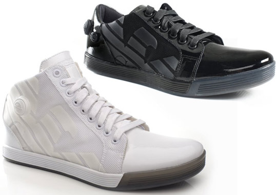 Yesterday we presented to you the sportswear oriented EA7 collection, and today we show you the higher end Emporio Armani footwear lineup. This line is comprised of four styles, each of which blends the Emporio Armani styling with the legendary Reebok Pump technology. Personally I like this line a lot more, with those high tops straight killing it!! These shoes will be released in August 2010.