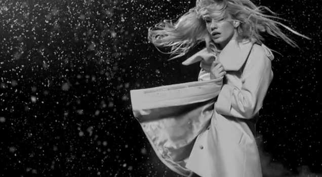 The minimalist video documents the models progression through each season, shivering in the fall, popping their collars and pulling their jackets tighter in the cold of winter, and dancing in the rain in the gloomy months between winter and spring.
