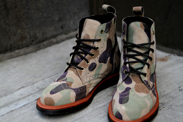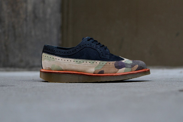 Shoe designer extraordinaire Ronnie Fieg has released the official visual for his collaboration with Dr. Martens for the Fall/Winter 2012 season. The release consists of two boots, the Rivington Brogue, which is made with a nubuck silhouette in a Navy/Camo suede and the Bowery Boot which is made completely from Camo suede. Both pieces will be available at Kith NYC and RonnieFieg.com tomorrow, November 2nd, 2012, at 11am EST.
