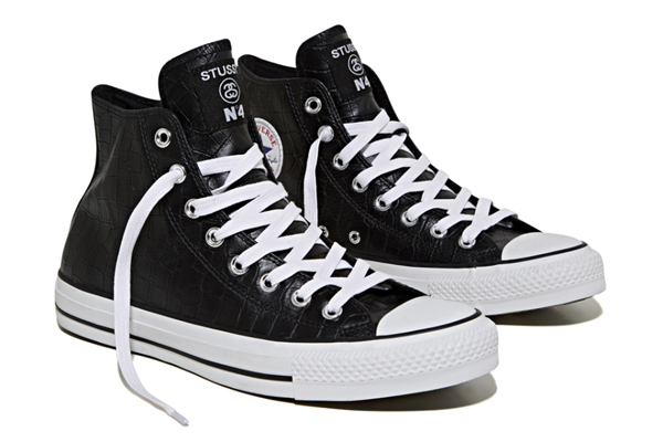 Stussy and Converse have once again teamed up for another Japan-only Stussy Deluxe CX-PRO OX drop featuring three high-top Chuck Taylor All Stars for Fall/Winter 2013. Available in black, purple and red colourways, the collaborative sneakers are made from premium croc-embossed tumbled leather upper with a woven Stussy No. 4 tongue label, and an interlocking “SS” on the sole. This limited Stussy x Converse collaboration drops exclusively at Stussy chapters and the brand’s online store for $85 USD this Saturday, November 16. Get yours, if you can.