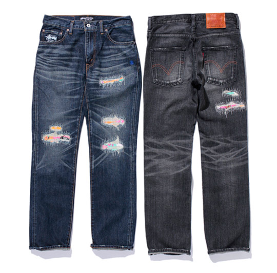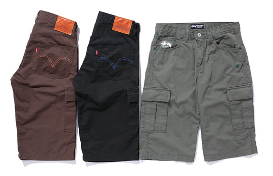 If there is one thing I am beyond certain about, that is Levi’s always works with the sickest companies for exclusive collabos! This time around they hooked up with Japanese urban style authority Stussy, on two exclusive pieces. The first is a highly distressed pair of 505 Denim, based on the historic “Chango” model, which features awesome details of multi-color patches, Stussy logos on the coin pocket and woven inside the waistband, and a genuine leather patch. The jeans come in a Indigo or Black. The second item in this collaborative effort is a pair of military inspired cargo shorts, complete with leather patch and dual branding. Both pieces in all colourways are available now at Stussy Chapter stores and Levi’s store in Japan.