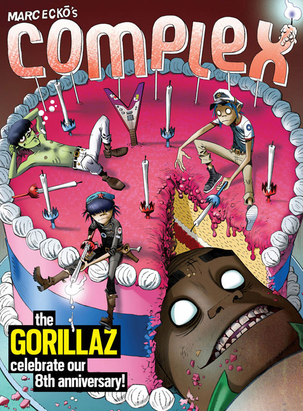 Nearly five years after their last album, The Gorillaz are back with their latest offering, Plastic Beach, and they want to set the record straight. To do this they have tapped Complex Magazine, who allowed they band of wacky cartoon musicans grace the cover of their April/May 2010 issue. The cover celebrates the 8th anniversary of Complex, and on the inside you can read the cover article, and interview with the band.