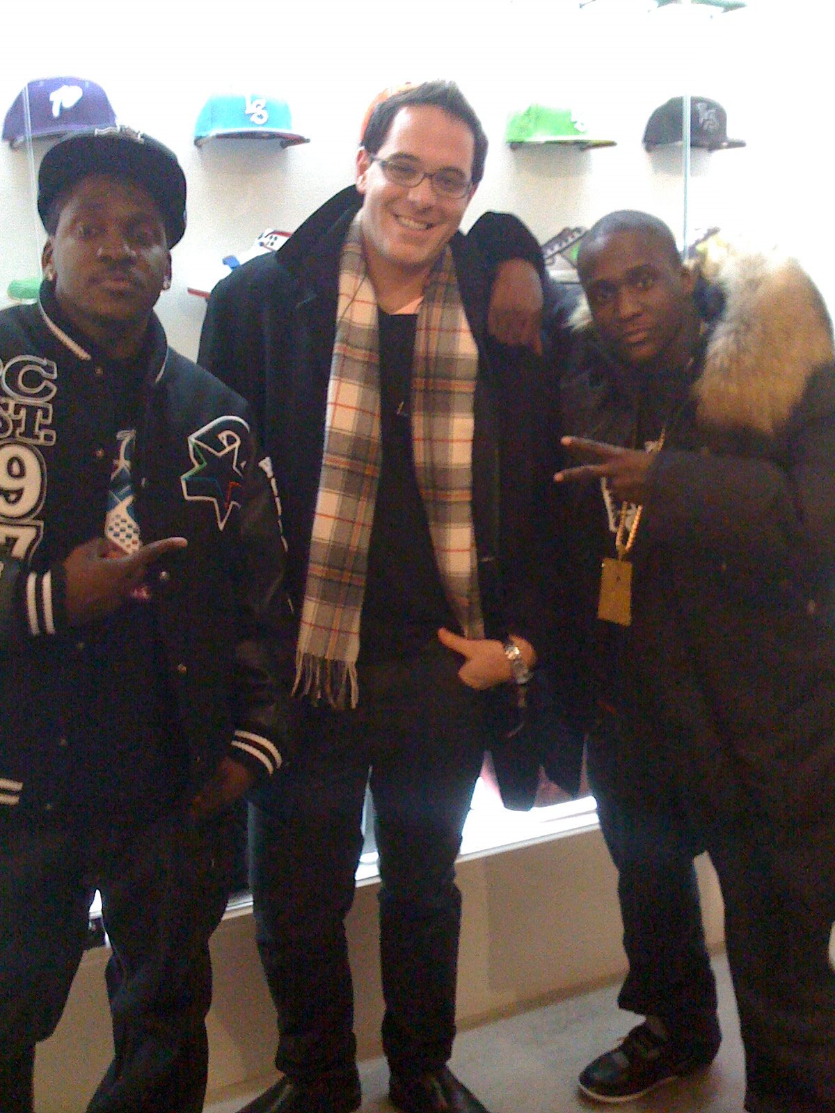 Today after work I raced down to Livestock, the store where I get my sick kicks from, in the blistering cold because I had got the hot tip that Virginia's hip hop duo Clipse were in town performing tonight at Circa. Take my breath away! I have loved these guys since I heard "Grindin'" years ago! The background on my computer for years now is of the graffiti angel from "Ma I Don't Love Her," so needless to say it was a real honour to meet these guys. And they are real solid dudes. Malice is a really funny dude, he had everyone cracking up and Pusha T was real cool, cool as ice... At one point Hawley asked Malice what kind of fur was on his coat, and he said "I don't know, it's Gucci." She said, "I think it's coyote" and he said "Yeah, cool, I like that. It's coyote!" It was wicked! If for some reason you do not know them, then you need to check them out immediately.