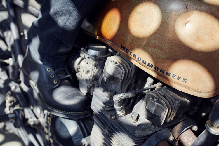 Danish custom motorcycle shop Wrenchmonkees has teamed up with quality bootmaker Red Wing Heritage on a super cool custom collabo boot that you will definitely want this winter. The all black biker boot is built up utility and functionality found in Scandinavian design and modeled on the ever popular and cool Iron Ranger silhouette. Made from black spitfire — a heavily waxed, rough and reverse-suede leather, and featuring brass eyelets and speedhooks all of which sit on top of a classic black Virbram sole. whether you ride a bike or you are just cool enough to pull them off, these boots are definitely a must have this winter. Keep your eyes on Red Wing Heritage stockists for an imminent release.